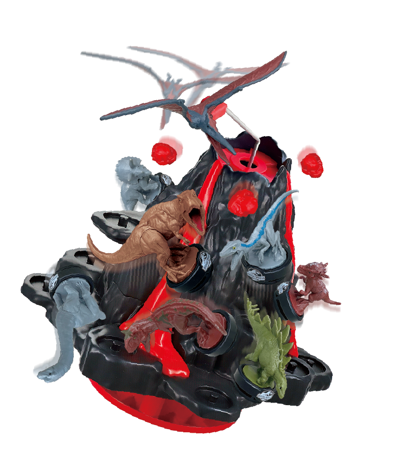 Place the Dinosaur Figures onto the volcano but don't make the Pteranodon fly around above the volcano or it might erupt!